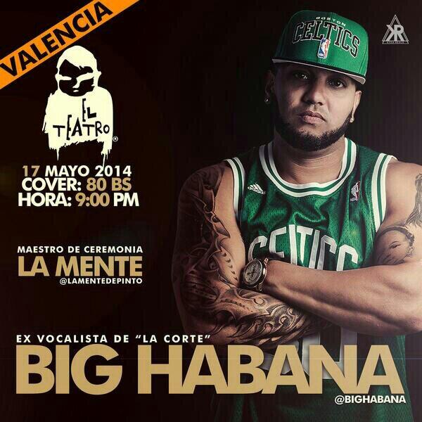 Big Habana Se Estará Presentando En El Teatro Bar (Valencia) Junto Con El Maestro De Ceremonia La Mente, Las Entradas Serán Vendidas Desde Temprano En La Puerta. Fecha: 17 De Mayo Del 2014. ¡No Te Lo Pierdas!
